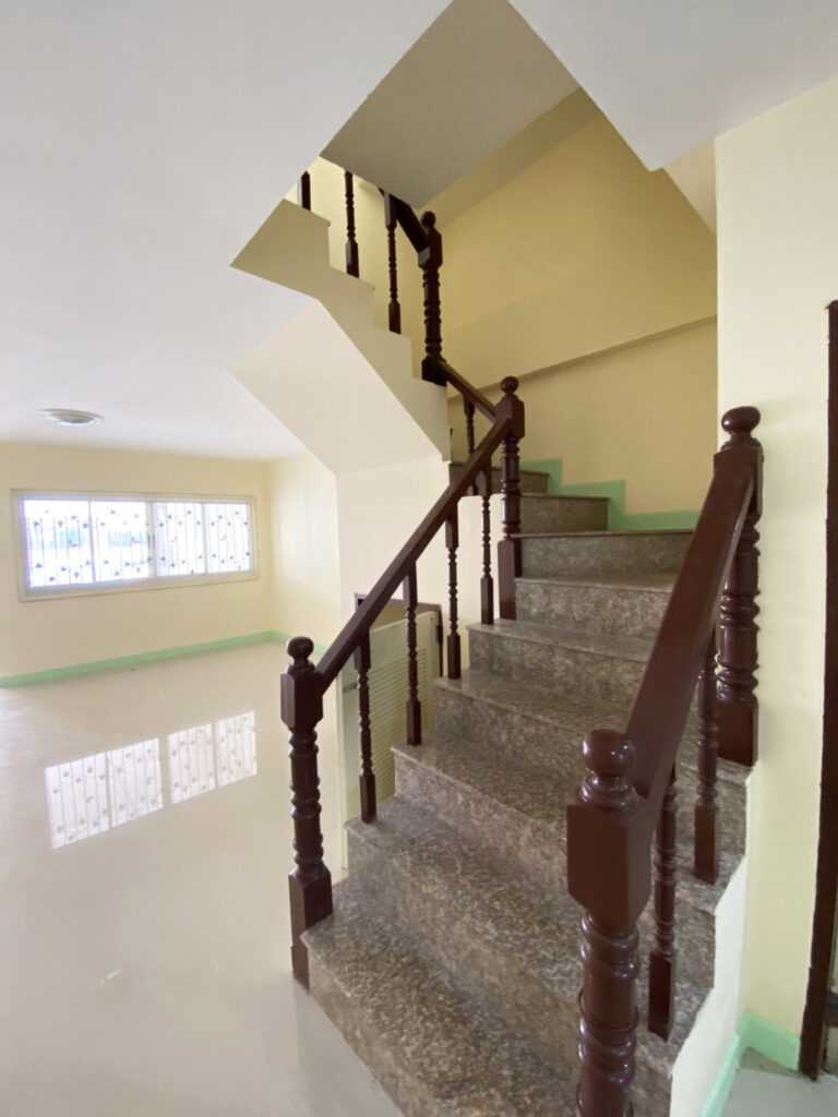 – ภายในบ้าน พื้นปูกระเบื้อง ทั้งชั้นบนและชั้นล่าง บันไดปูพื้นด้วยหินแกรนิต